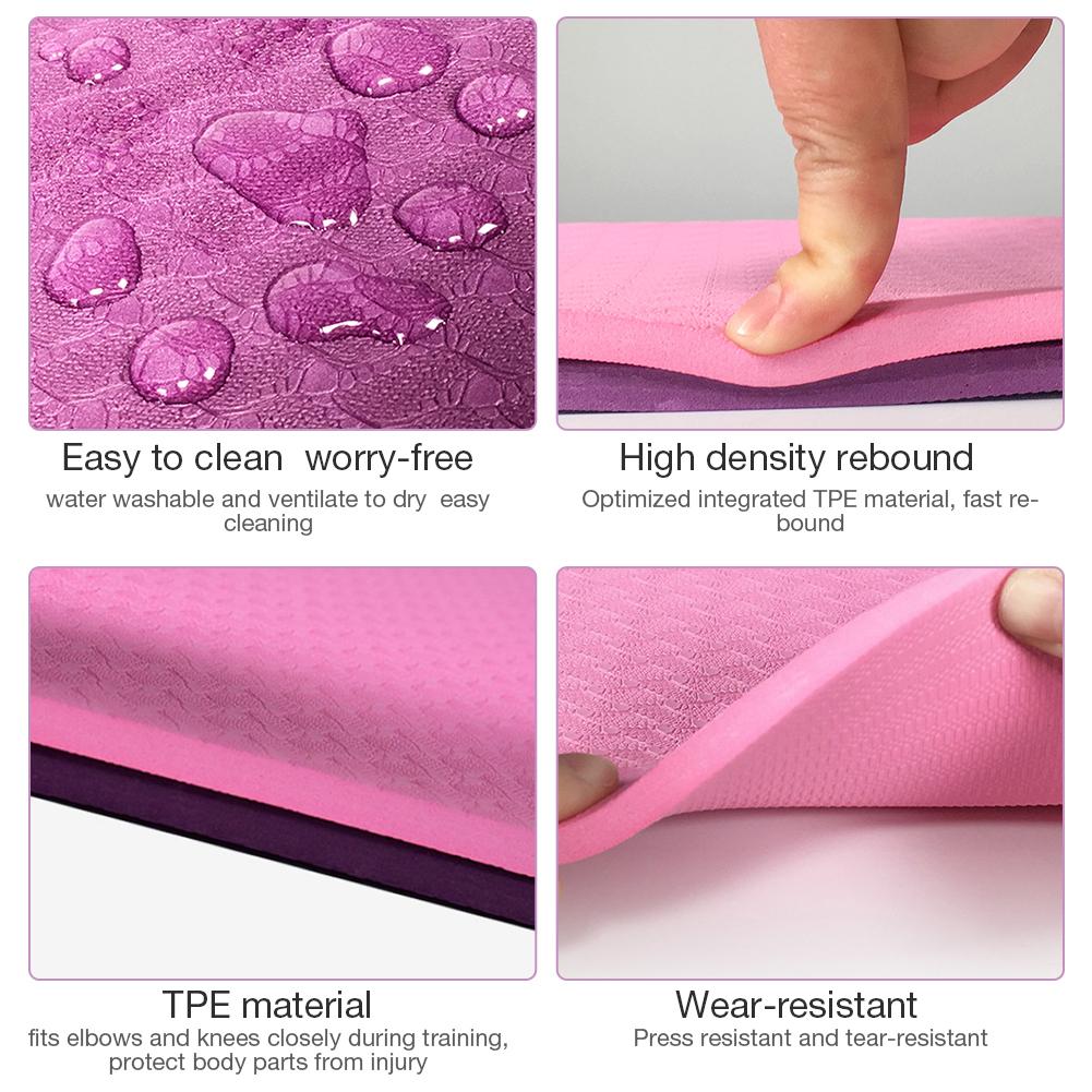 1、Protective Function: The 6mm thick high-density foam can protect knees, elbows, sit bones, wrists, head during yoga, Pilates and floor exercises.